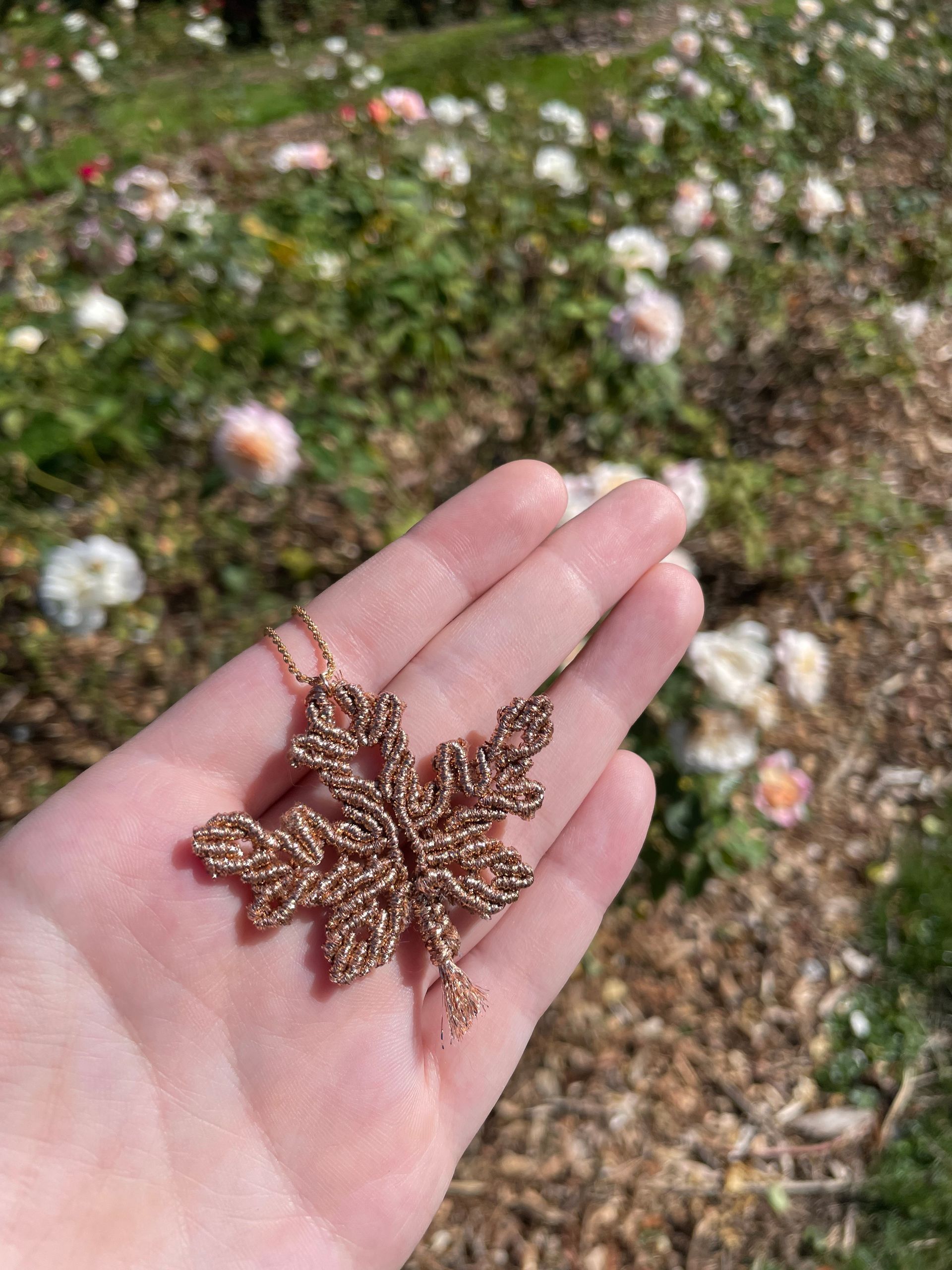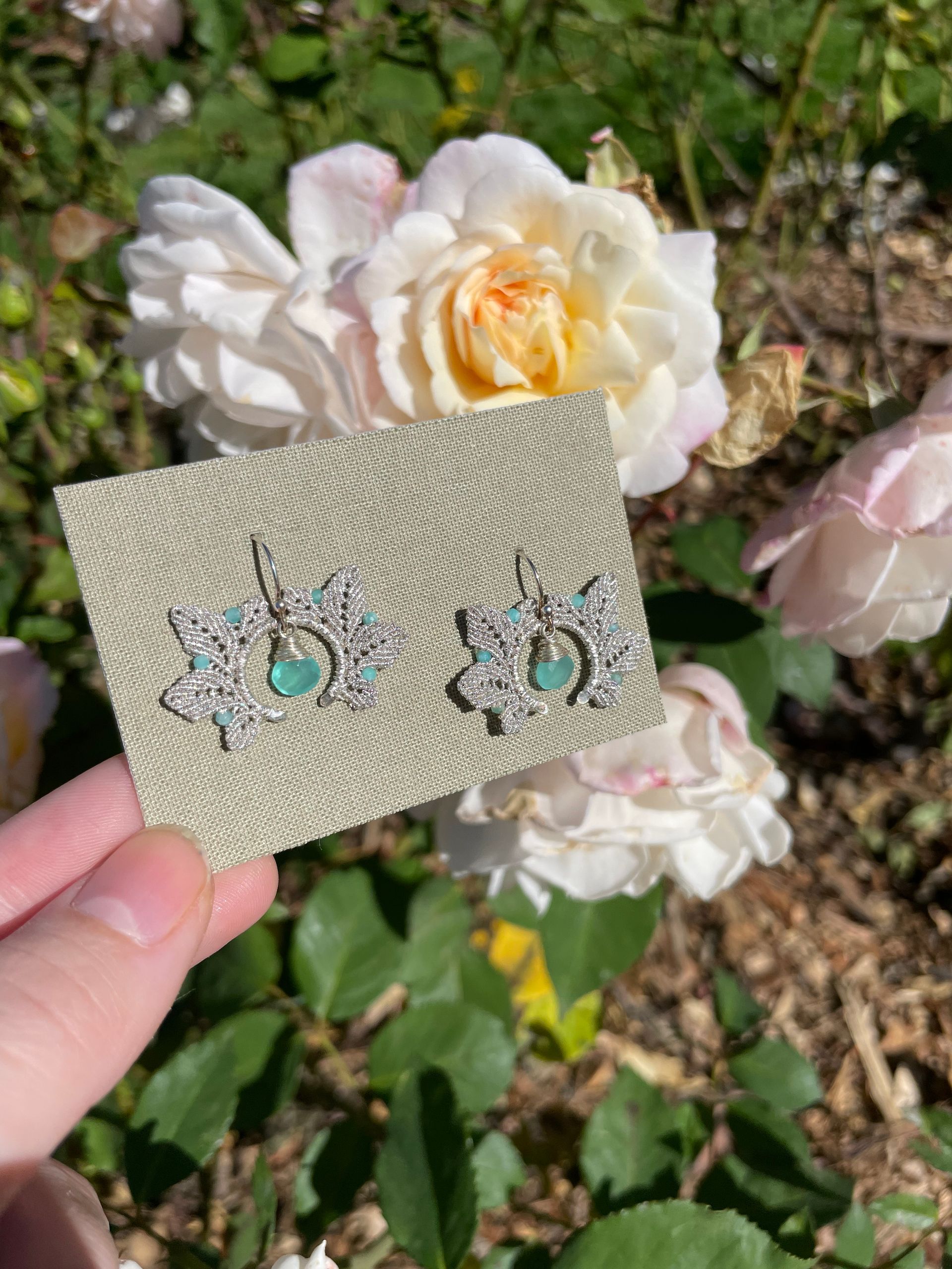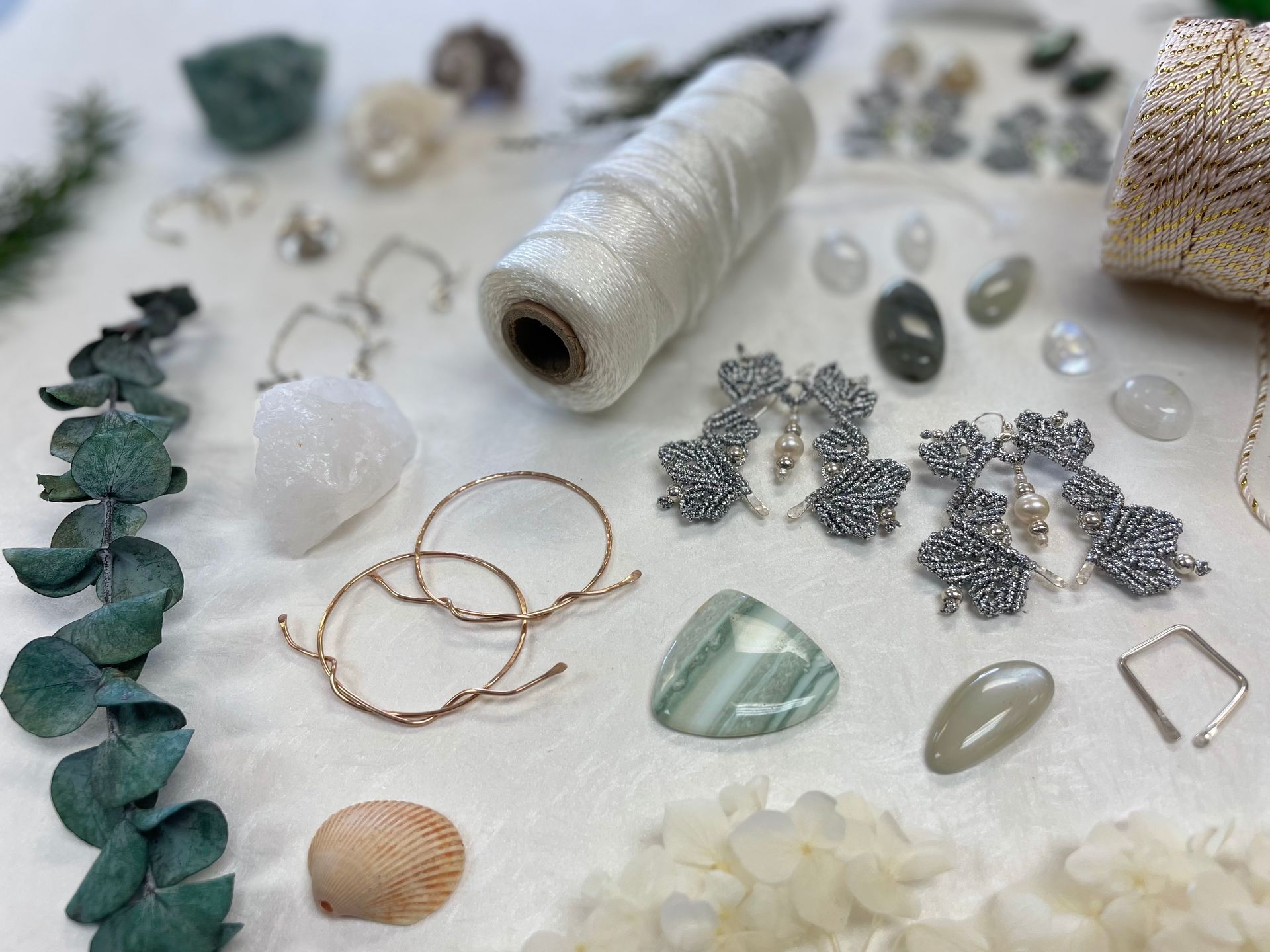 Hand-braided, unique designs using metallic thread, real gemstones, and precious metals. Materials are ethically sourced and made to last forever.