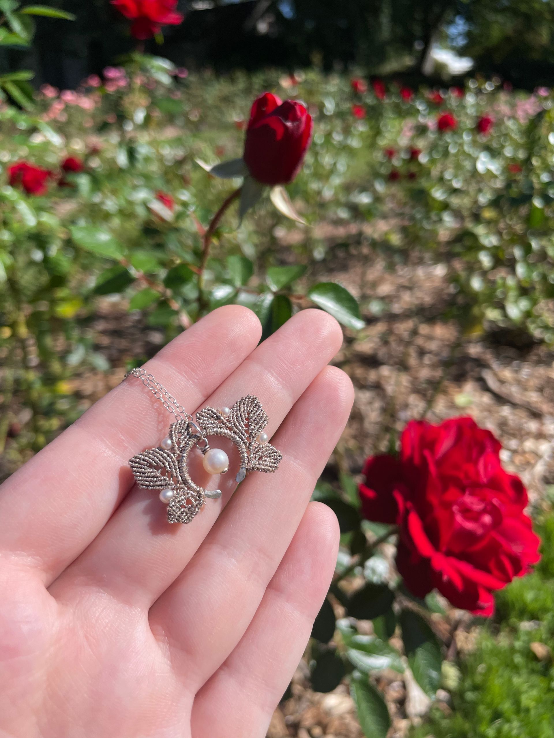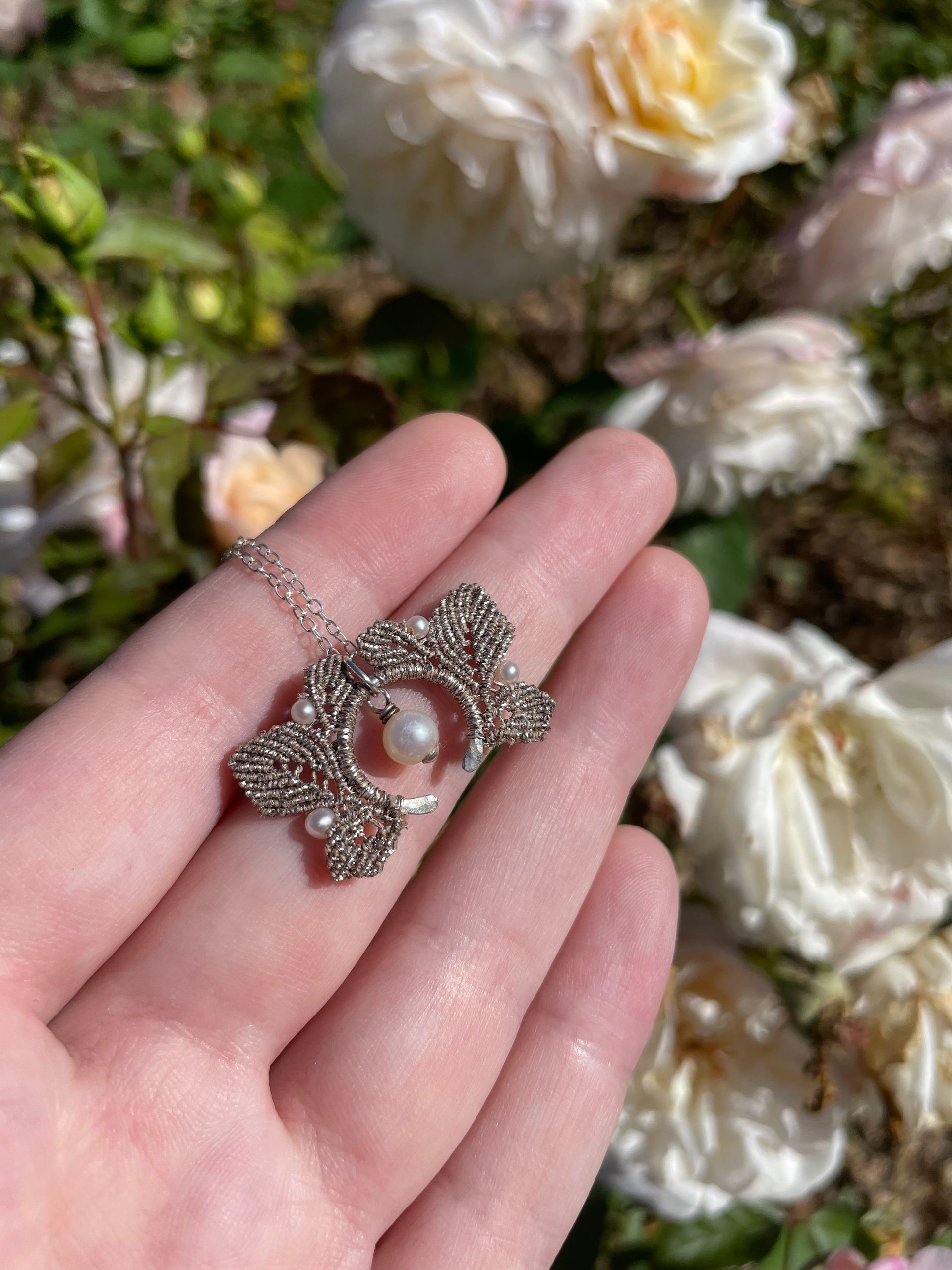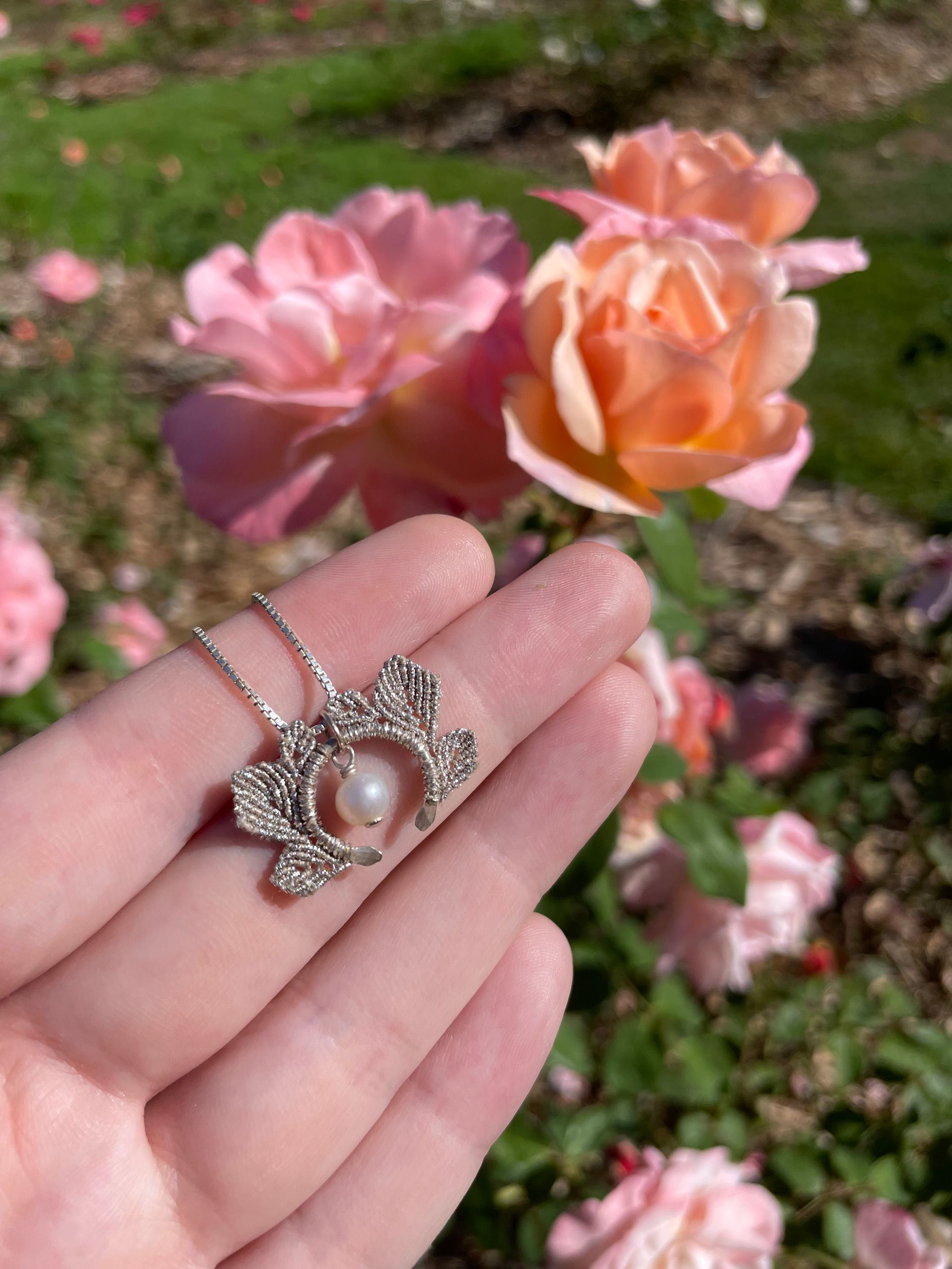 Hand-braided, unique designs using metallic thread, real gemstones, and precious metals. Materials are ethically sourced and made to last forever.